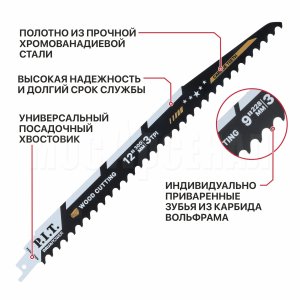 Благодаря зубьям из карбида вольфрама легко справляется с твердыми породами древесины, где обычные биметаллические лезвия быстро выходят из строя.