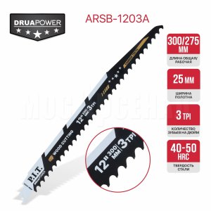 Пильное полотно для сабельных пил ARSB-1203A серии DRUA идеально подходит для работ по различным видам древесины, в том числе твердых пород.