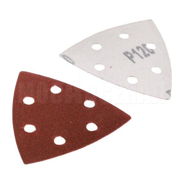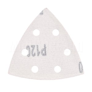 Крепится к инструменту при помощи велкро-основы (липучки). Треугольник перфорирован шестью отверстиями для лучшего отвода пыли в пылесборник.