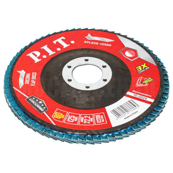 Круг лепестковый шлифовальный торцевой APLS26-12580 изготовлен из диоксида циркония и корунда предназначен для работы по нержавеющей стали, легированным сталям и сплавам и черным металлам.