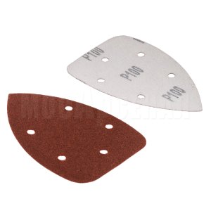 Крепится к инструменту при помощи велкро-основы (липучки). Треугольник перфорирован пятью отверстиями для лучшего отвода пыли в пылесборник.