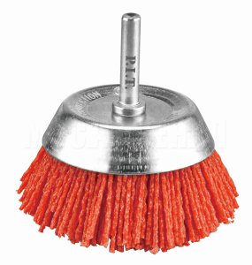Чашечная кордщетка с проволокой из абразивного нейлона. Подходит для щадящей обработки и зачистки поверхностей, подготовки поверхности к покраске, удаления ржавчины, грязи, краски и лаков, а также для получения необходимой шероховатости. Чашеобразная форма и большой диаметр позволяют производить обработку больших поверхностей.