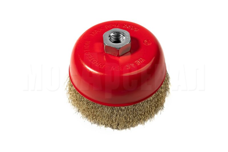 Чашечная кордщетка со стальной витой латунированной проволокой. Подходит для щадящей обработки и зачистки поверхностей, удаления ржавчины, грязи, краски и лаков, а также для получения необходимой шероховатости. Чашеобразная форма и большой диаметр позволяют производить обработку больших поверхностей.