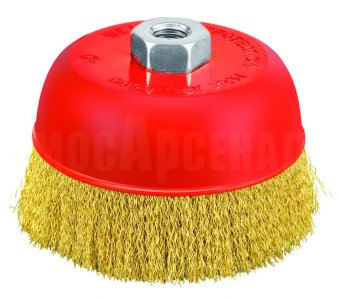Чашечная кордщетка со стальной витой латунированной проволокой. Подходит для щадящей обработки и зачистки поверхностей, удаления ржавчины, грязи, краски и лаков, а также для получения необходимой шероховатости. Чашеобразная форма и большой диаметр позволяют производить обработку больших поверхностей.
