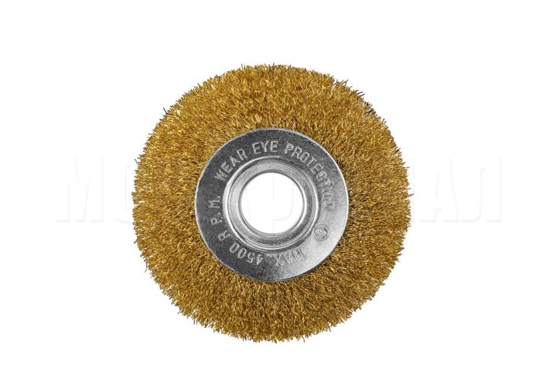 Дисковая кордщетка со стальной витой латунированной проволокой. Подходит для щадящей обработки и зачистки поверхностей, удаления ржавчины, грязи, краски и лаков, а также для получения необходимой шероховатости. Дисковая форма позволяет производить обработку узких кромок, рам, решеток и других труднодоступных мест.