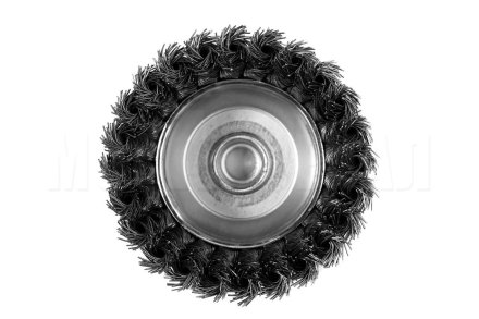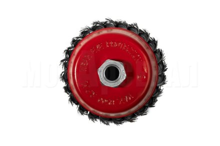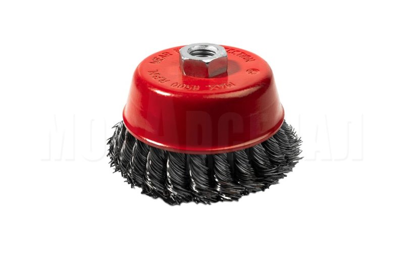 Чашечная кордщетка с витой проволокой из высокопрочной стали предназначена для использования с угловыми шлифовальными машинами для зачистки металлических поверхностей, удаления покрытий, краски, ржавчины, следов сварки, обработки узких кромок, рам и решеток.