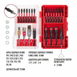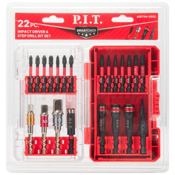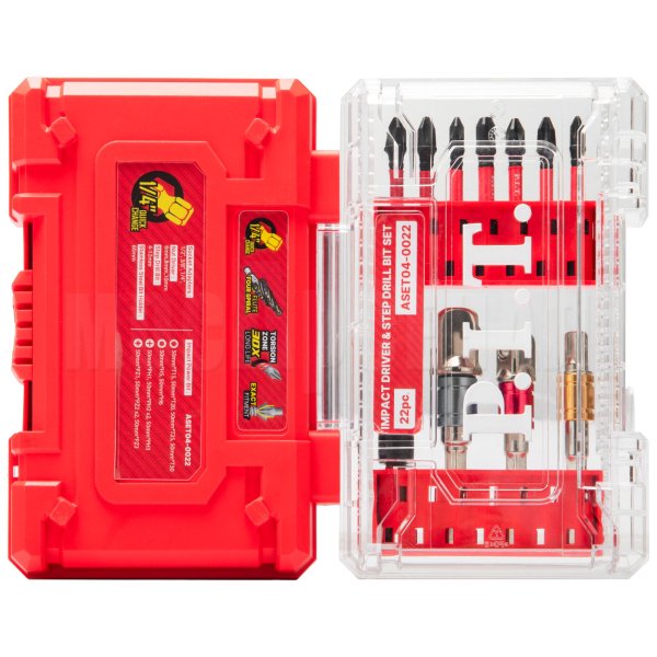Входящие в состав набора ASET04-0022 ударные биты предназначены для использования с ударными винтовертами, а также могут использоваться и с классическими дрелями-шуруповертами.