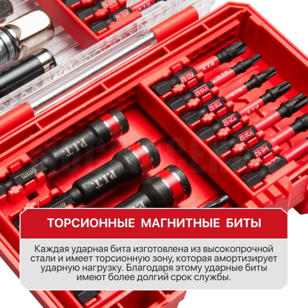 Биты имеют торсионную зону, которая амортизирует ударную нагрузку. Благодаря этому ударные биты имеют более долгий срок службы.