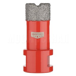 Алмазные коронки P.I.T. AMAS18 серии DRUA предназначены для сверления отверстий в керамограните, натуральном и искусственном камне, керамике, кирпиче и мраморе. Благодаря широкой алмазной кромке, выполненной по технологии вакуумного спекания алмазов, коронка имеет высокий ресурс и скорость сверления отверстий в материале. Хвостовик с внутренней резьбой M14 позволяет использовать коронки с угловыми шлифовальными машинами. Возможно использование коронок как для сухого, так и для мокрого сверления. Использование охлаждающей жидкости позволяет увеличить срок службы коронки и скорость работы.