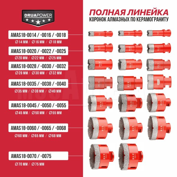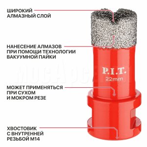 Коронка алмазная по керамограниту P.I.T. AMAS18-0022