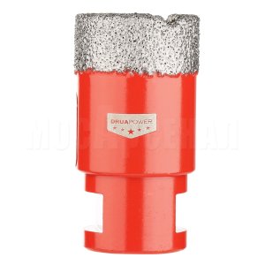 Алмазные коронки P.I.T. AMAS18 серии DRUA предназначены для сверления отверстий в керамограните, натуральном и искусственном камне, керамике, кирпиче и мраморе. Благодаря широкой алмазной кромке, выполненной по технологии вакуумного спекания алмазов, коронка имеет высокий ресурс и скорость сверления отверстий в материале. Хвостовик с внутренней резьбой M14 позволяет использовать коронки с угловыми шлифовальными машинами. Возможно использование коронок как для сухого, так и для мокрого сверления. Использование охлаждающей жидкости позволяет увеличить срок службы коронки и скорость работы.