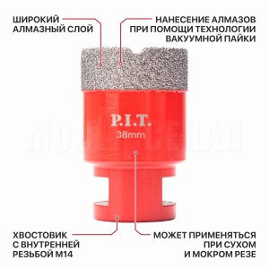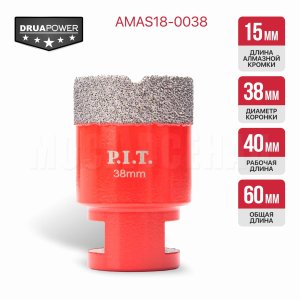 Алмазные коронки P.I.T. AMAS18 серии DRUA предназначены для сверления отверстий в керамограните, натуральном и искусственном камне, керамике, кирпиче и мраморе.