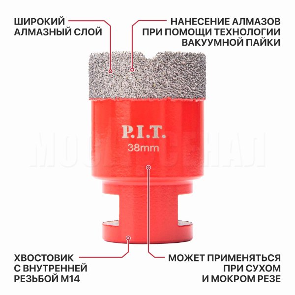 Хвостовик с внутренней резьбой M14 позволяет использовать коронки с угловыми шлифовальными машинами.