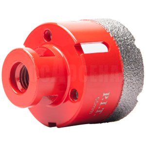 Особенности и - Нанесение алмазов при помощи технологии вакуумной пайки - Широкий алмазный слой - Возможность использования при сухом и мокром сверлении - Хвостовик с внутренней резьбой М14