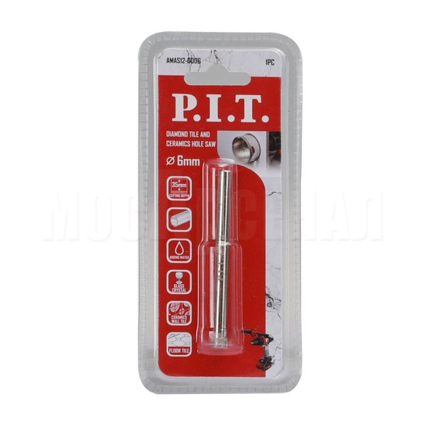 Коронка алмазная AMAS12-0006 - идеальный инструмент для просверливания отверстий в керамической плитке или стеклянных перегородках для монтажа оборудования, мебельных конструкций или прокладки коммуникаций.