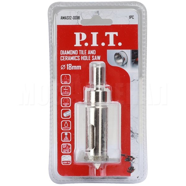 Коронка алмазная AMAS12-0018 - идеальный инструмент для просверливания отверстий в керамической плитке или стеклянных перегородках для монтажа оборудования, мебельных конструкций или прокладки коммуникаций.