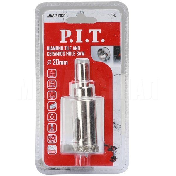 Коронка алмазная AMAS12-0020 - идеальный инструмент для просверливания отверстий в керамической плитке или стеклянных перегородках для монтажа оборудования, мебельных конструкций или прокладки коммуникаций.