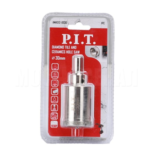 Коронка алмазная AMAS12-0030 - идеальный инструмент для просверливания отверстий в керамической плитке или стеклянных перегородках для монтажа оборудования, мебельных конструкций или прокладки коммуникаций.