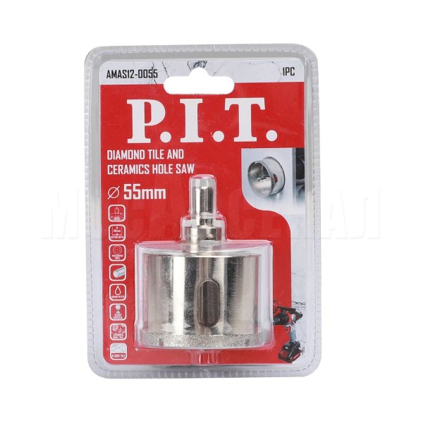 Коронка алмазная AMAS12-0055 - идеальный инструмент для просверливания отверстий в керамической плитке или стеклянных перегородках для монтажа оборудования, мебельных конструкций или прокладки коммуникаций.