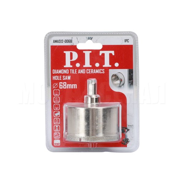 Коронка алмазная AMAS12-0068 - идеальный инструмент для просверливания отверстий в керамической плитке или стеклянных перегородках для монтажа оборудования, мебельных конструкций или прокладки коммуникаций.