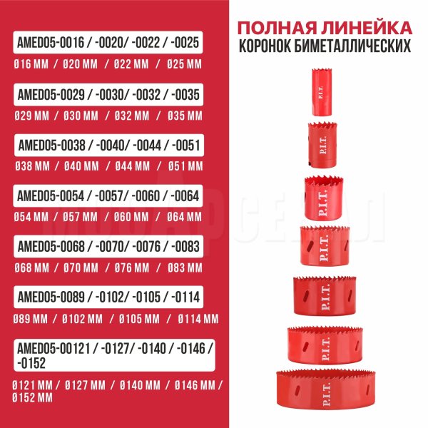 Коронка биметаллическая серии AMED05 изготовлена из высоколегированной быстрорежущей (HSS) стали марки М42, которую ещё называют Super Cobalt. В составе стали М42 также содержится молибден, что обеспечивает хорошее сочетание прочности и твердости.