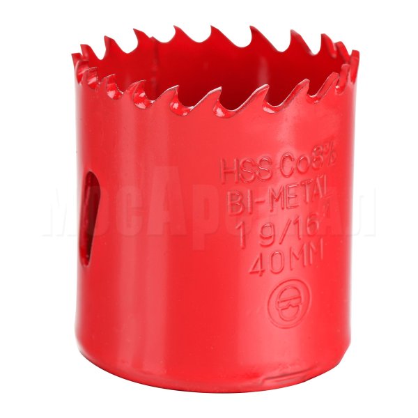 Коронка биметаллическая серии AMED05 изготовлена из высоколегированной быстрорежущей (HSS) стали марки М42, которую ещё называют Super Cobalt. В составе стали М42 также содержится молибден, что обеспечивает хорошее сочетание прочности и твердости.