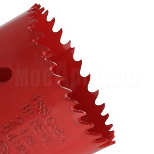 Коронка биметаллическая серии AMED05 изготовлена из высоколегированной быстрорежущей (HSS) стали марки М42, которую ещё называют Super Cobalt. В составе стали М42 также содержится молибден, что обеспечивает хорошее сочетание прочности и твердости.