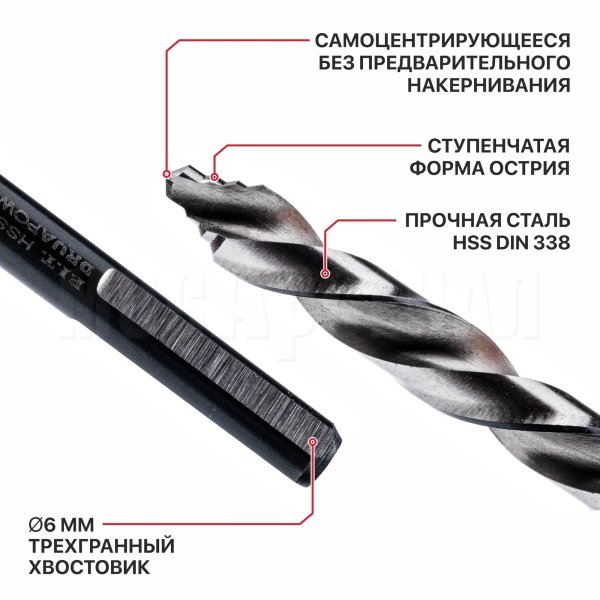 для сверления металла, легированных сплавов, нержавеющей стали, а также пластика.
