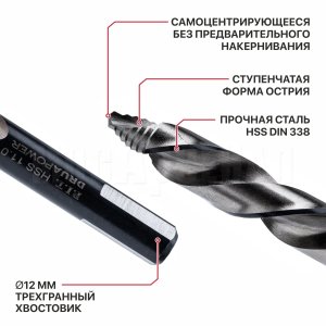 для сверления металла, легированных сплавов, нержавеющей стали, а также пластика.
