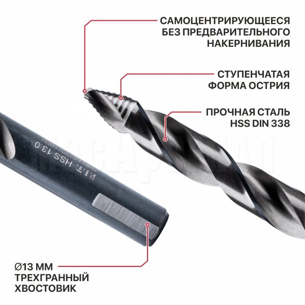 для сверления металла, легированных сплавов, нержавеющей стали, а также пластика.
