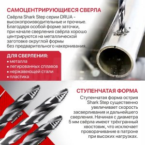 Свёрла Shark Step серии DRUA - высокопроизводительные и прочные спиральные свёрла по металлу.