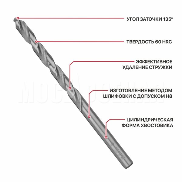 Сверла изготовлены из высококачественной быстрорежущей стали HSS 4241 с твердостью 60 HRC методом шлифовки, Позволяют обрабатывать черный металл, легированные и нелегированные стали и сплавы, цветные металлы.