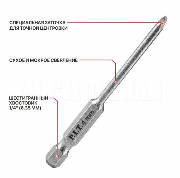 Сверло по стеклу и керамике P.I.T. AMAS13-004S