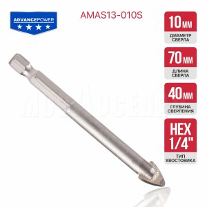 Сверла по стеклу и керамике серии AMAS13-S изготовлены из высококачественной легированной конструкционной стали. Специальная заточка наконечника позволяет точно центрировать сверло и обеспечивает чистоту краев отверстий.