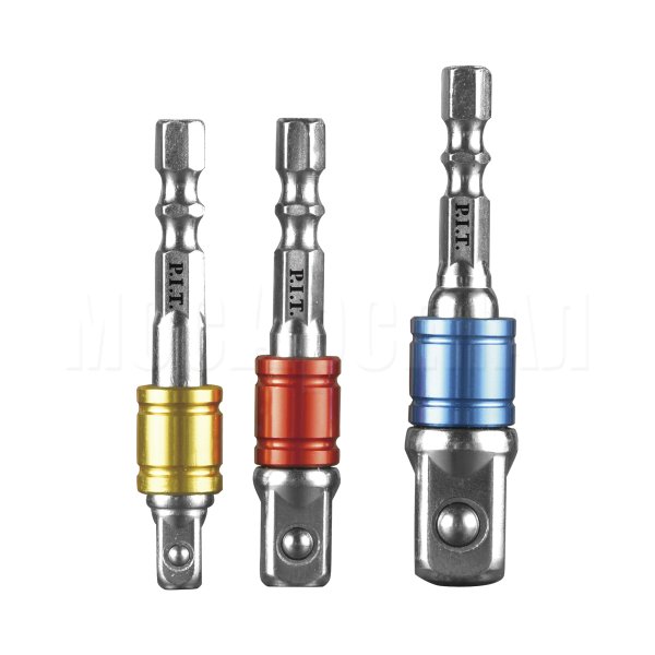 Шестигранный хвостовик адаптеров 1/4" позволяет использовать торцевые головки с ударными винтовертами и с классическими дрелями-шуруповертами.