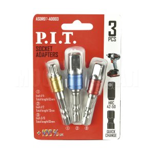 Набор адаптеров ASDR-AD003 содержит три адаптера для установки торцевых головок с различным посадочным квадратом.