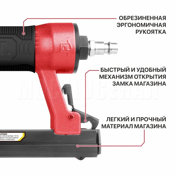 Степлер пневматический PNA16-A помогает быстро и надежно крепить паркетные доски, фанеру, гипсокартон, кожу и т.д. Рукоять удобной формы снабжена нескользящим покрытием для надежного удержания инструмента без проскальзывания руки. Модель работает со скобами 6-16 мм. Емкость магазина составляет 140 шт. Удобный, легкий и многофункциональный инструмент. Отличный вариант для домашнего ремонта.