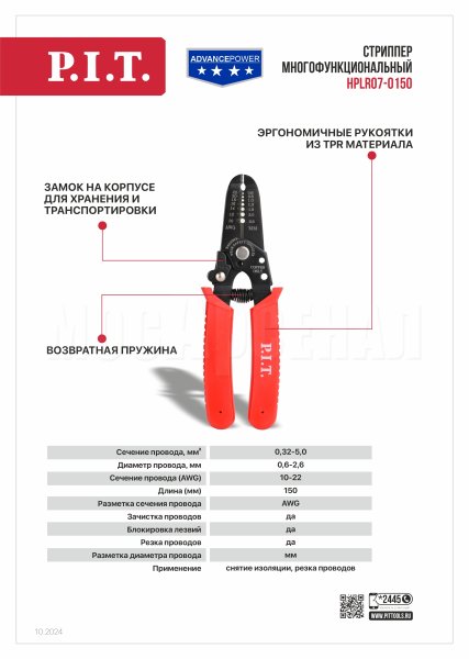 Стриппер многофункциональный P.I.T.HPLR07-0150 - универсальный инструмент для работы с проводами различного диаметра и сечения.