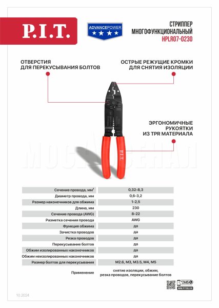 Многофункциональный стриппер HPLR07-0230 - универсальный инструмент для работы с проводами различного диаметра и сечения.