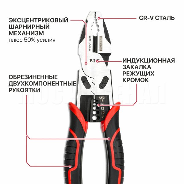Плоскогубцы комбинированные многофункциональные HPLP01-0225 входят в линейку выскокачественных инструментов серии DRUA POWER и представляют собой усиленный шарнирно-губцевый инструмент.