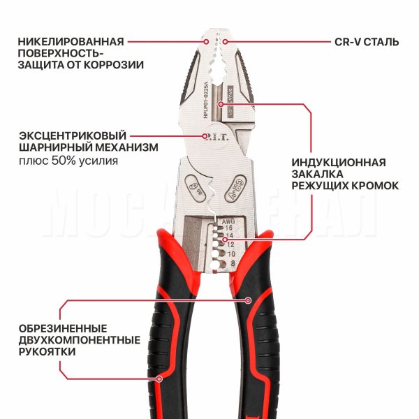 Плоскогубцы комбинированные многофункциональные HPLP01-0225A входят в линейку высококачественных инструментов серии DRUA POWER и представляют собой усиленный шарнирно-губцевый инструмент.