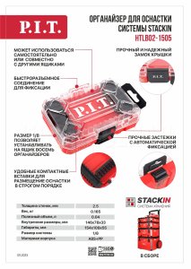 Органайзер для оснастки HTLB02-1505 является частью системы хранения STACKIN. Может использоваться самостоятельно или совместно с другими ящиками и органайзерами системы для организованного хранения и транспортировки инструментов, оснастки и приспособлений.