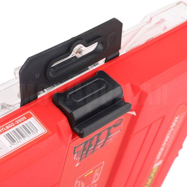Прочные застежки с автоматической фиксацией позволяют быстро, легко и надежно фиксировать органайзеры системы на ящики или между собой для удобства хранения и транспортировки.
