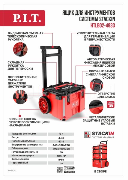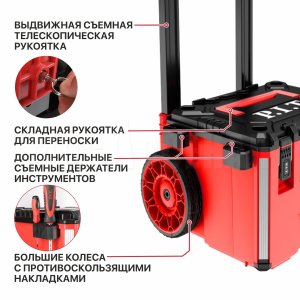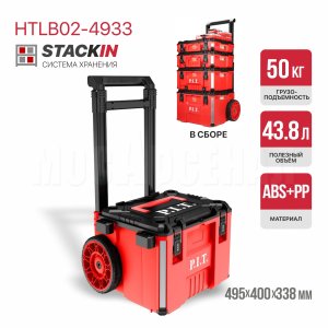 Ящик для инструментов HTLB02-4933 является основным базовым ящиком системы хранения STACKIN. Ящик имеет выдвижную телескопическую рукоятку и большие безвоздушные колеса с противоскользящими накладками, что позволяет легко перемещать его по строительной площадке, даже вместе с установленными на него другими ящиками и органайзерами системы.